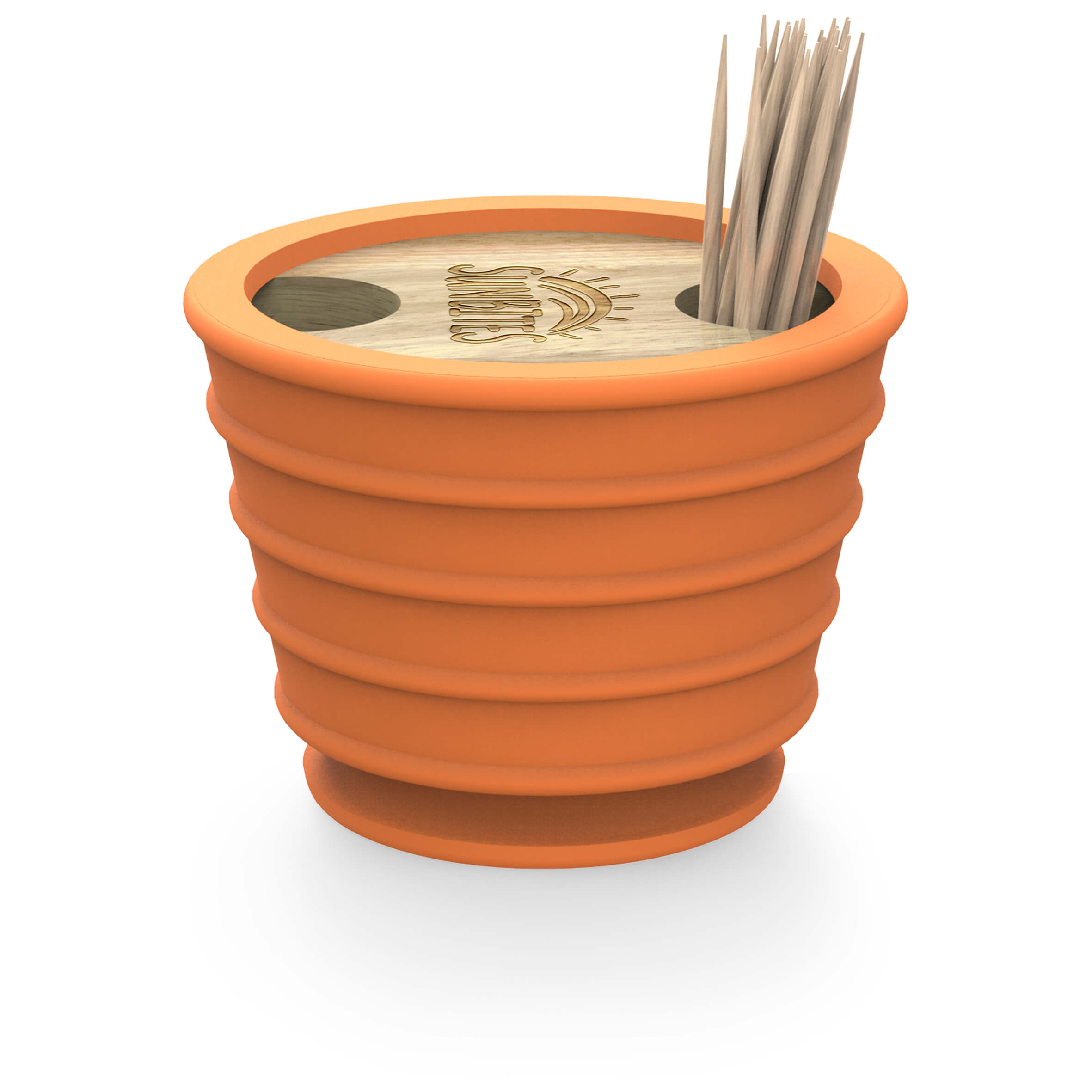 Add this fun, colourful and useful item to the table at your next function or party. Separate new toothpicks from used ones. This clever container can also serve as a receptacle for olive pits, cherry stones, or nutshells. This party piece is not supplied in a box, so we suggest adding it to a custom gift set for the foodie or entertainer.