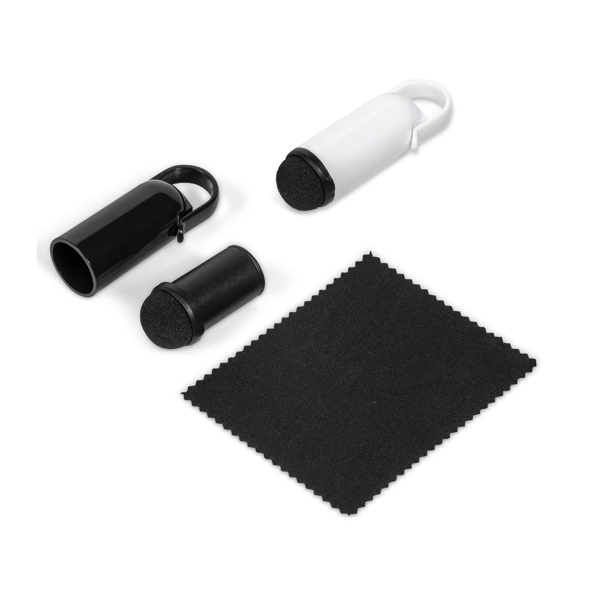 An innovative promotional item that includes a screen cleaner and microfibre cloth. Includes carabiner to hook product onto bag. ABS: 8.5 ( l ) x 2.5 ( dia ): Microfibre cloth: 10 ( l ) x 8.2 ( w )