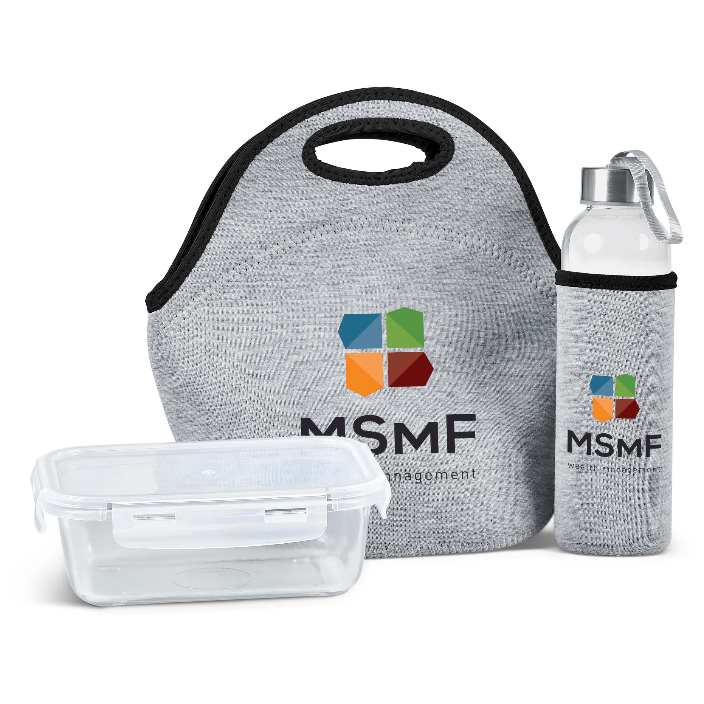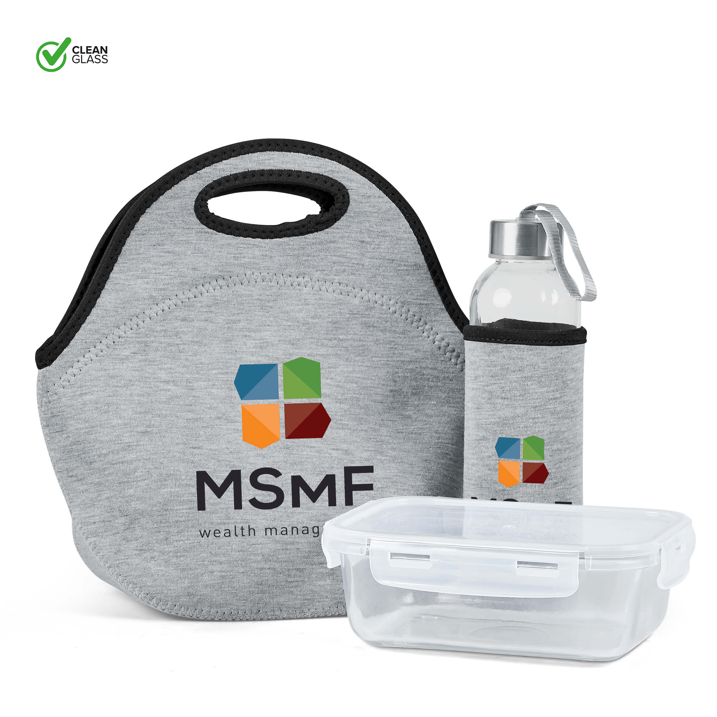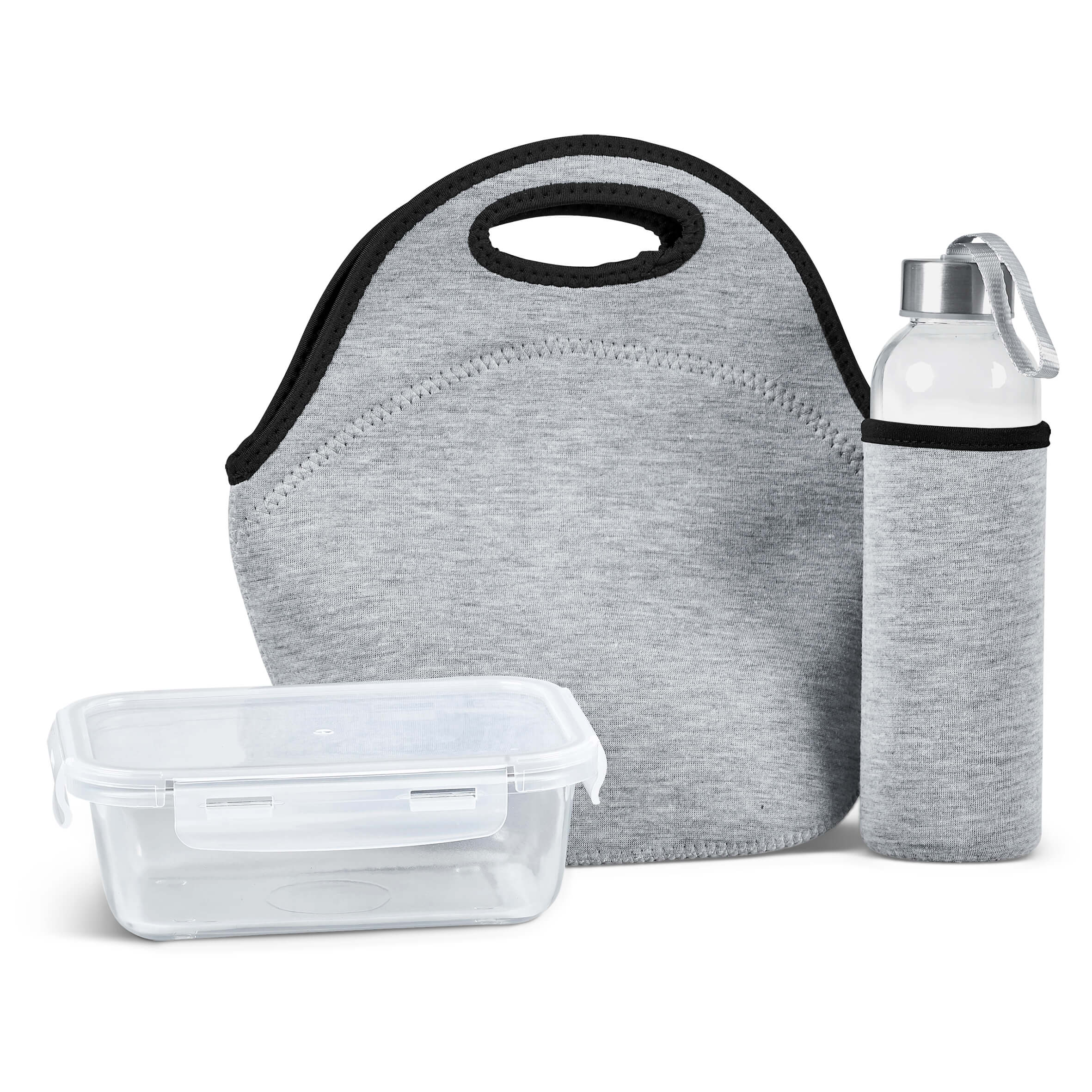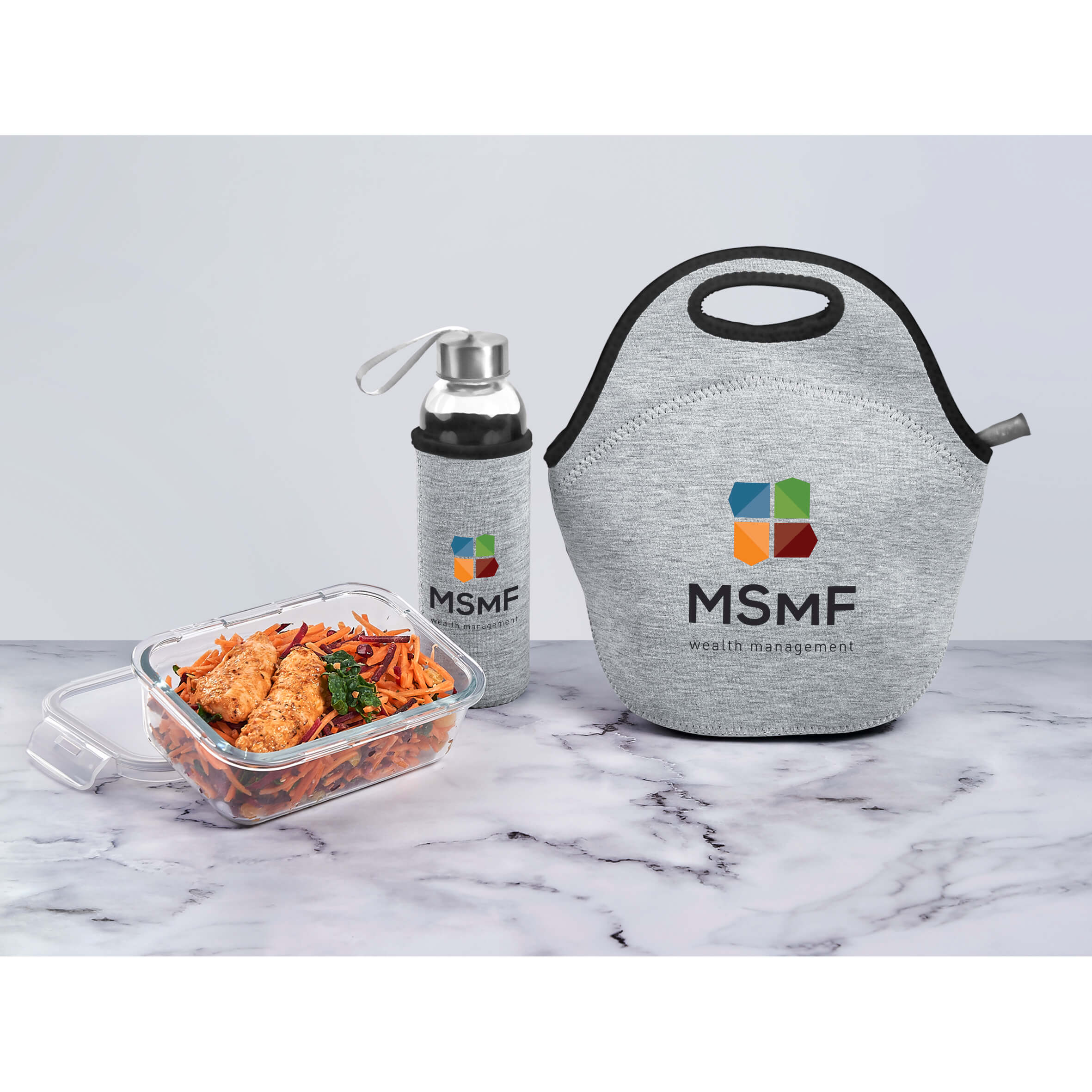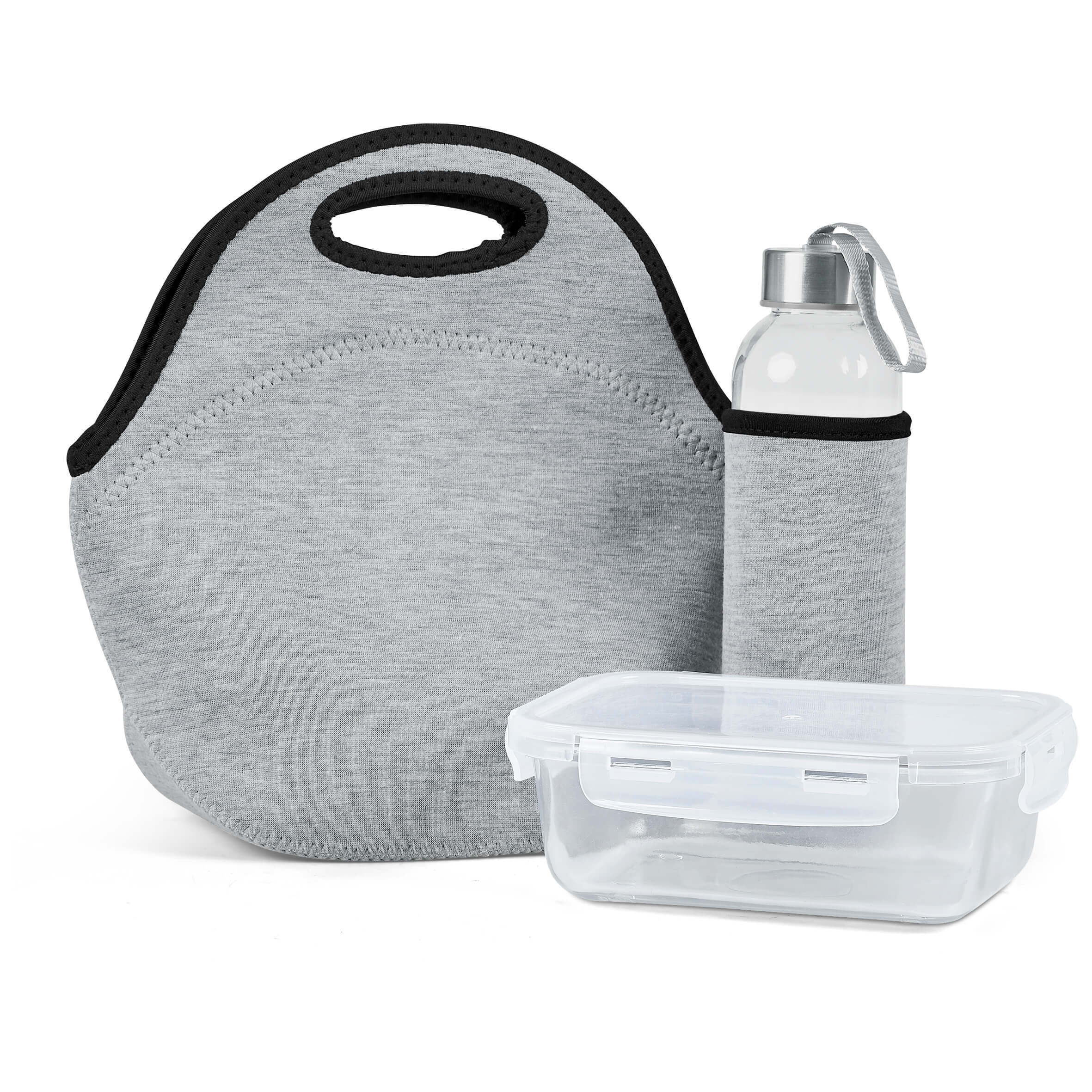 Featuring all the benefits of clean glass and protective, insulating neoprene, this kit is all you need to take a healthy lunch and refreshing drink to work, school, or study.