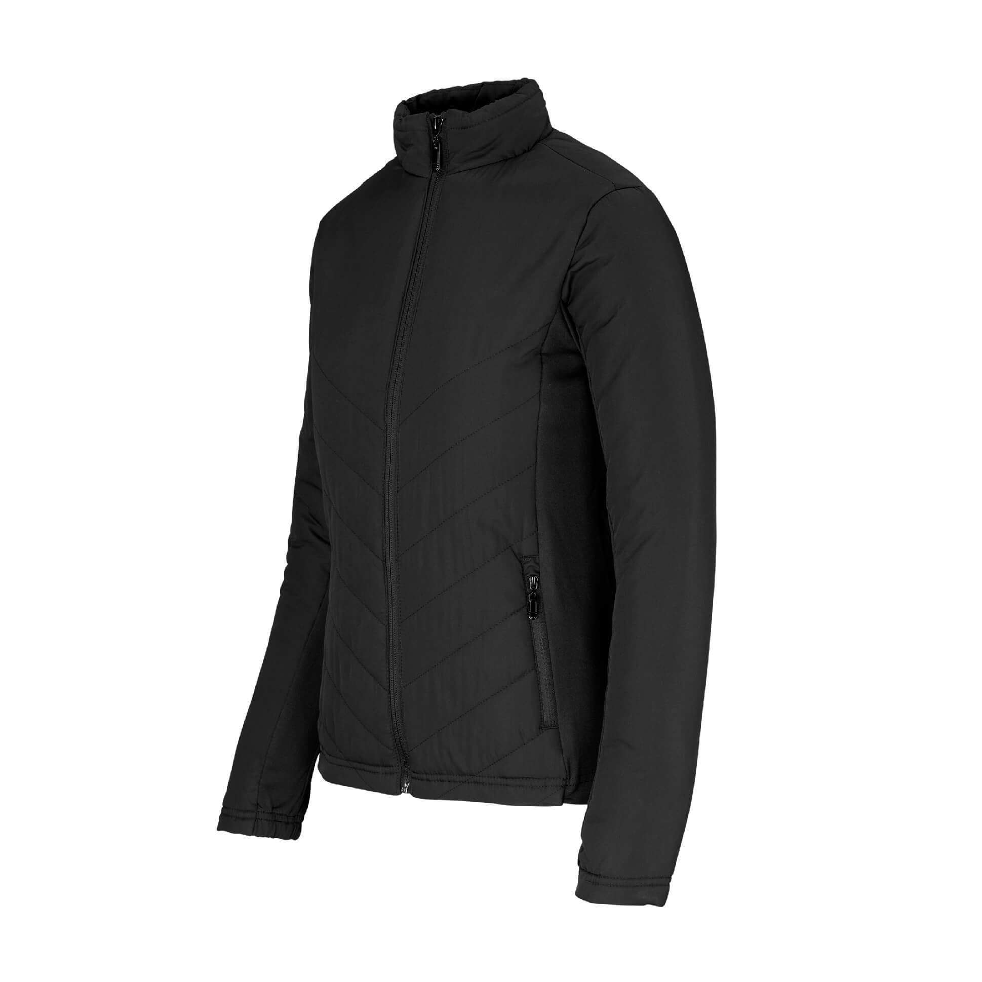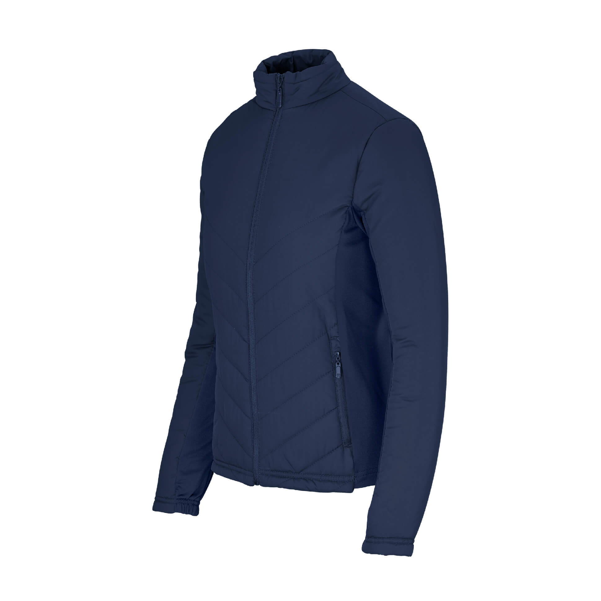 Lightly padded jacket features unique diagonal stitch detail on front and back • semi-elasticated cuffs